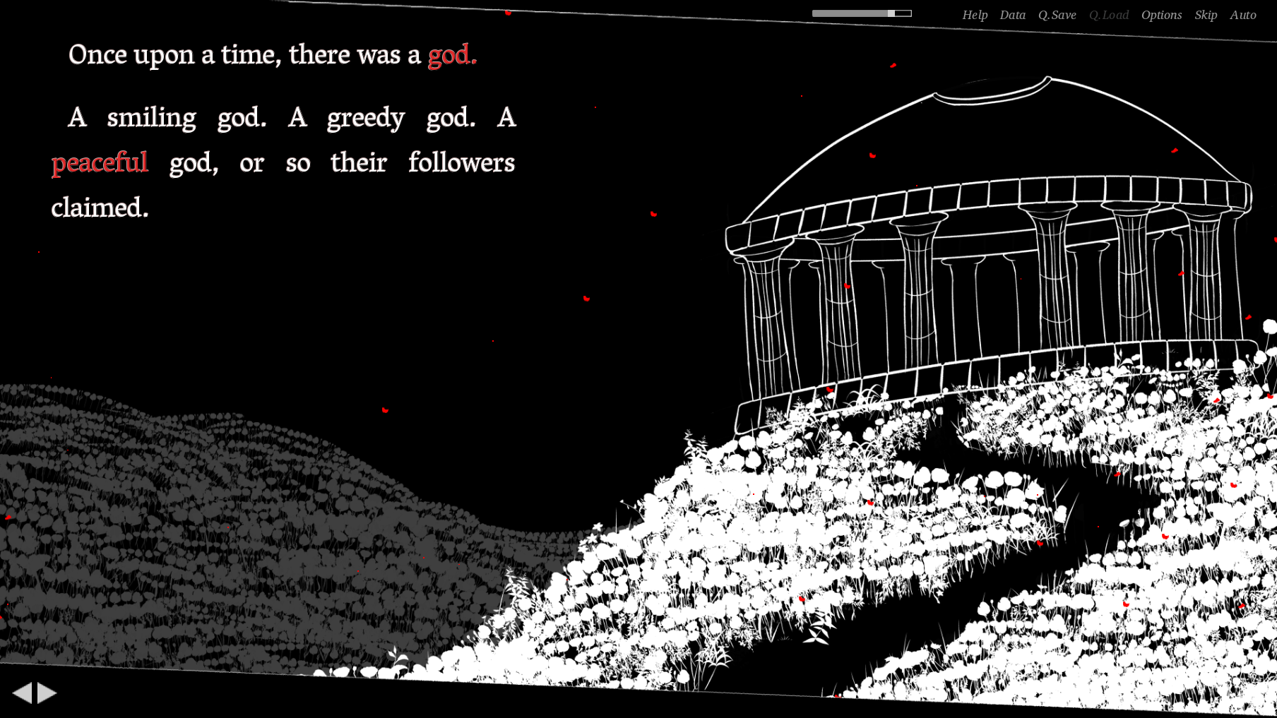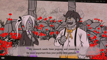 Atop the poppy hills are ruins to what was once revered and feared. One man wants to paint this scenery, while another wants to research it, while the forgotten god wants to have silence once and for all.