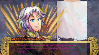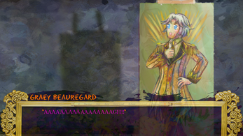 Man! That was so interesting! I loved how unique the faces were each time we returned to the title screen and replayed the visual novel. I love how hilarious it is that Graey can never be satisfied with his portrait and that karma truly bit his ass. The one thing I'm curious about is how many parts of him is still human and how many are robots. Yet I'm also curious about the fact that it seemed as though the canvas and him are linked, as if whatever is painted on it directly reflects or contradicts what is on Graey's face.